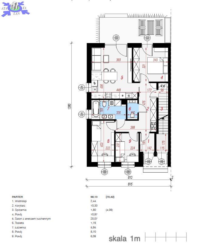 - spiżarnia - 1,80 m2,