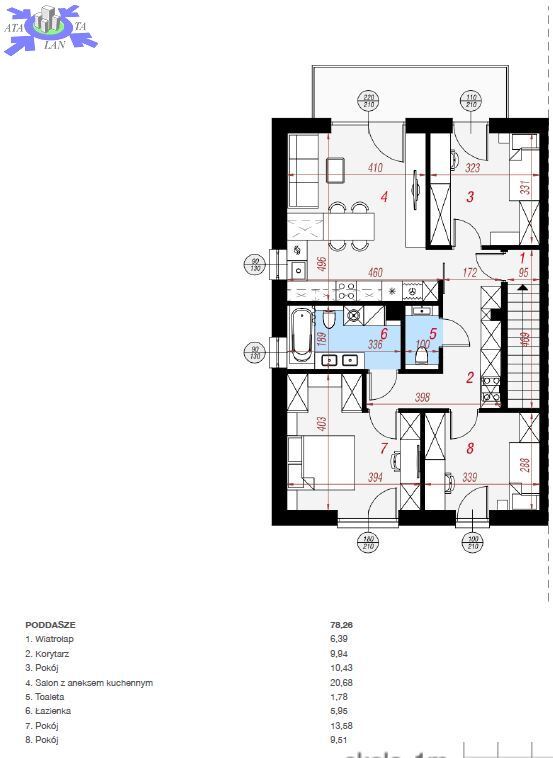 - toaleta - 1,78 m2,