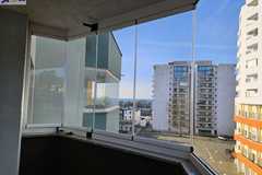 *na balkonie wykonano bezramowy system zabudowy balkonu typu fińskiego-