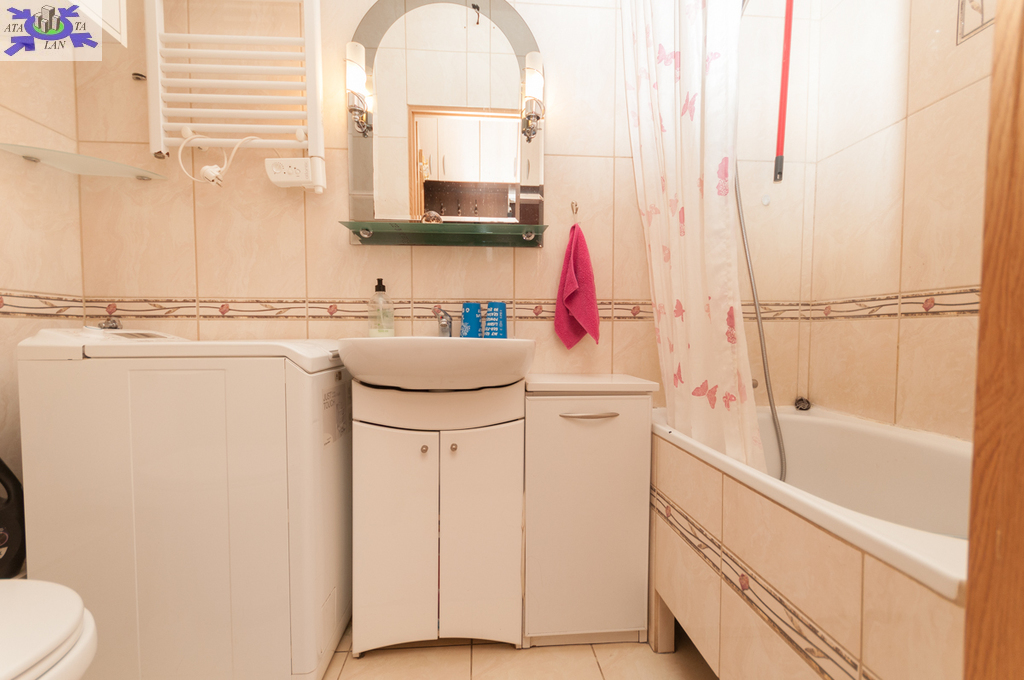 Duża wygodna sypialnia w kształcie kwadratu z dużą szafa i łożem małżeńskim. Pokój dzienny z rozkładanym narożnikiem i pozostałymi meblami jak na zdjęciu. Z części dziennej wchodzi się do widnej kuchni - meble kuchenne, płyta indukcyjna, piekarnik elektryczny, lodówko-zamrażarka, mikrofalówka.