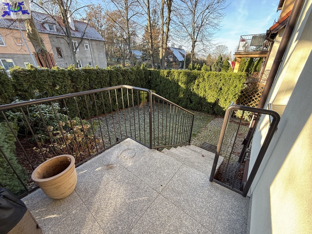 Do mieszkania przynależy ogrodzona, w pełni zagospodarowana działka o powierzchni 90 m2. Liczne nasadzenia, wysoka zieleń (tuje) oraz miejsce na grill tworzą idealną przestrzeń do wypoczynku.