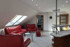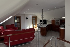 * Część mieszkalna (Poddasze - ok. 70 m2) Przestronny salon z aneksem kuchennym, 2 ustawne sypialnie oraz łazienka. Wnętrza gotowe do zamieszkania.