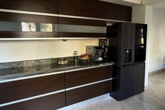 * Kuchnia Wyposażona w kamienne blaty i zabudowany sprzęt AGD.