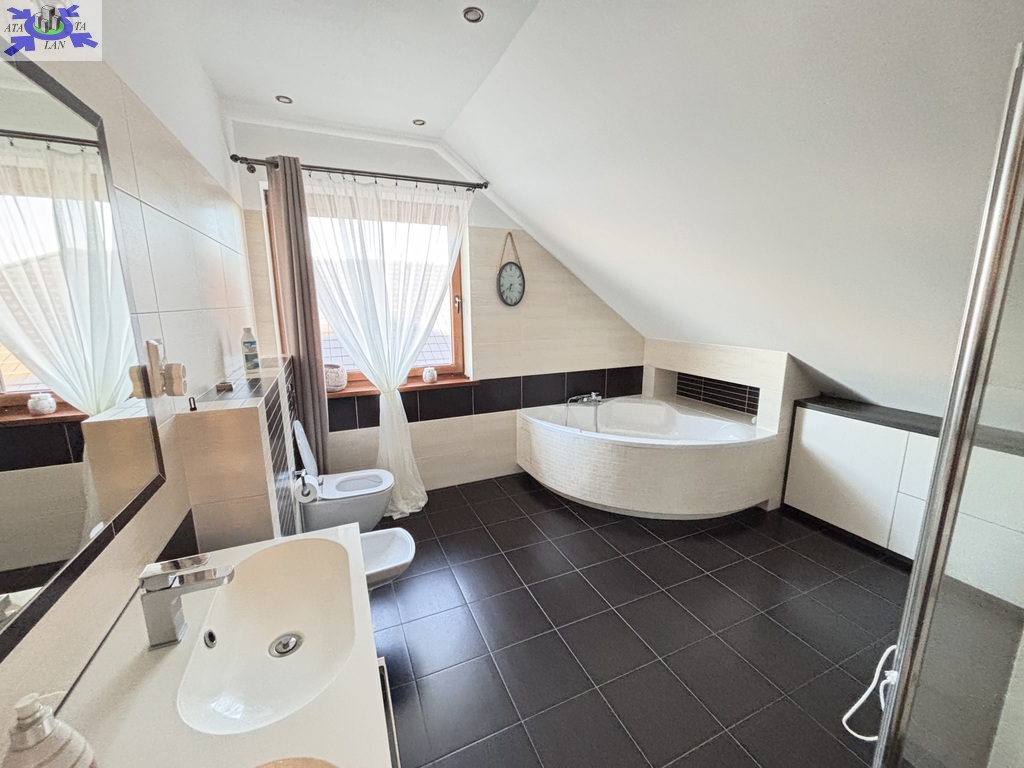 - sypialnia główna z wyjściem na balkon z widokiem na ogród, z indywidualną dużą łazienką z wanną i prysznicem