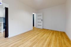 Podłogi w pokoju, kuchni i korytarzu wyłożone panelami.