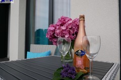 W każdym z apartamentów znajduje się w salonie kanapa, stolik kawowy, stół z czterema krzesłami, telewizor smart TV, w sypialni łóżko dwuosobowe, aneks kuchenny wyposażony w zabudowę szafek kuchennych, płytę grzewczą 2 - palnikową, lodówkę 60, oraz szafa dwudrzwiowa z lustrami. Ogrzewanie elektryczne podłogowe, jak również woda z pieca elektrycznego firmy Ariston sterowany zdalnie przez wi-fi. Meble ogrodowe oraz 4 miejsca parkingowe na działce.