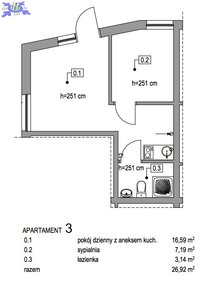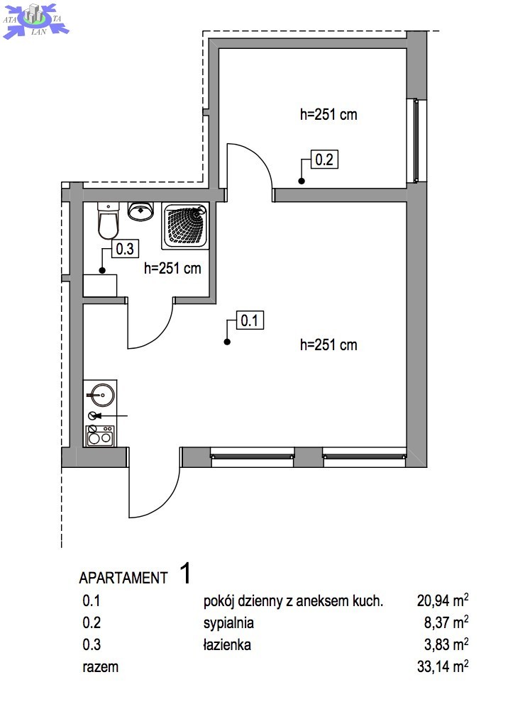 - powierzchnie apartamentów - 33,14m2, 33,14m2, 26,92m2, 28,93m2