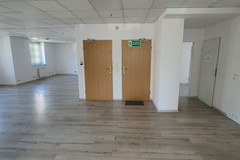 W części biurowej na podłogach panele (w podłodze ukryto florboxy z mediami), ściany gładzone, malowane. WC w glazurze i terakocie. Okna otwierane PCV, z zamontowanymi żaluzjami.