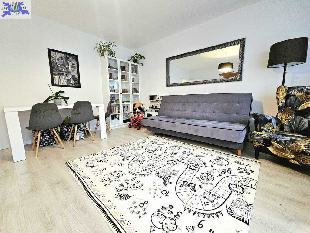 jasne i słoneczne, nowocześnie wykończone 2. pokojowe mieszkanie, usytuowane na 1. piętrze niskiego budynku z 1987 roku.