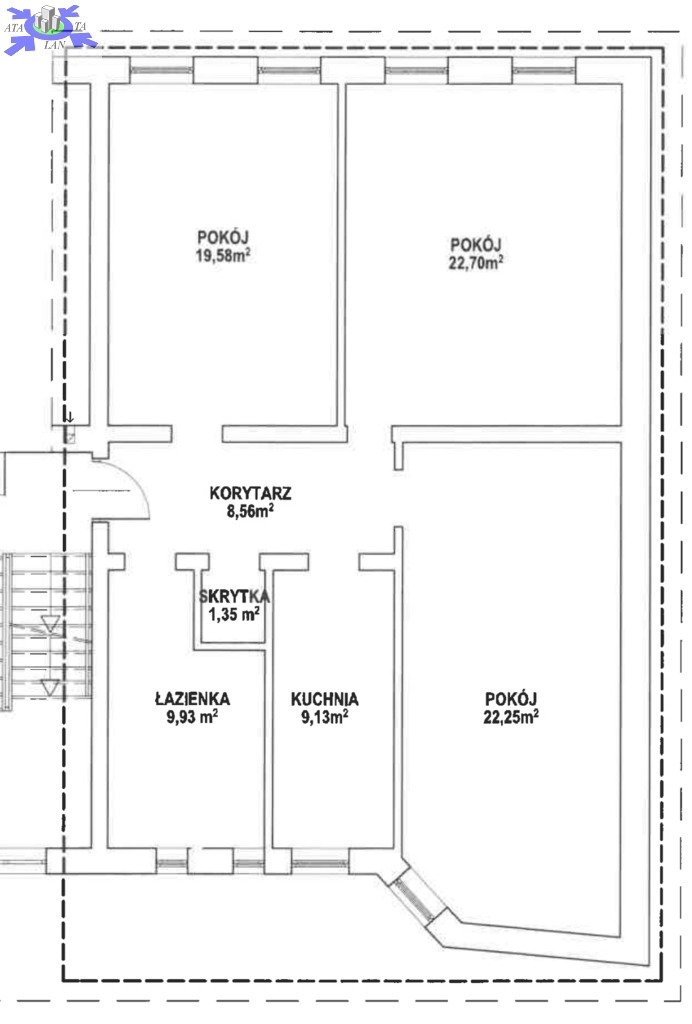 Mieszkanie o powierzchni 93,50 m2 składa się z