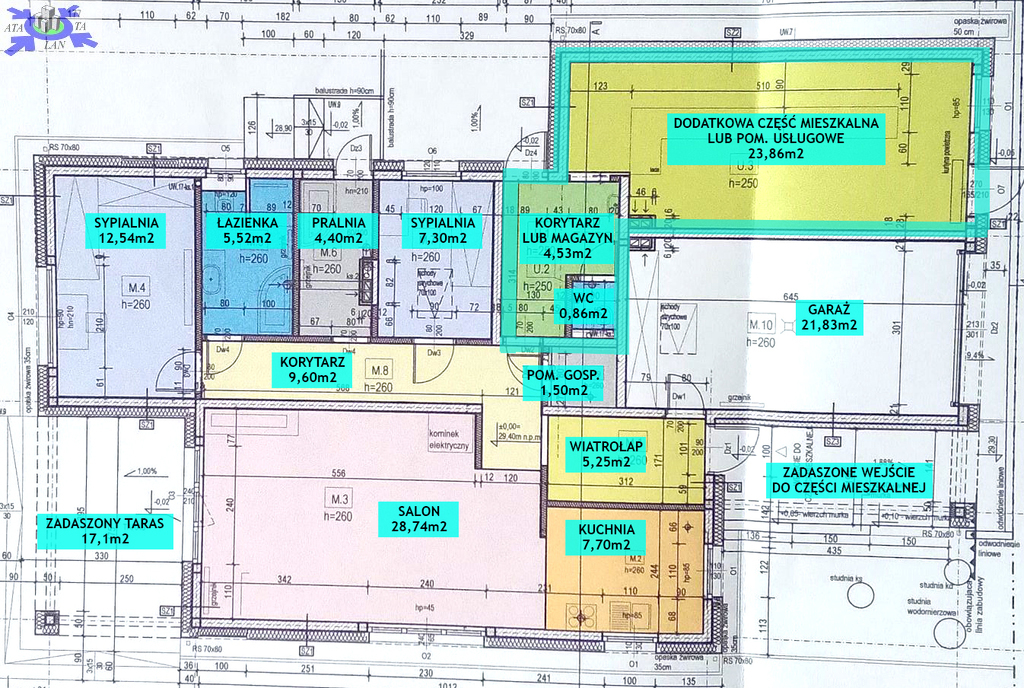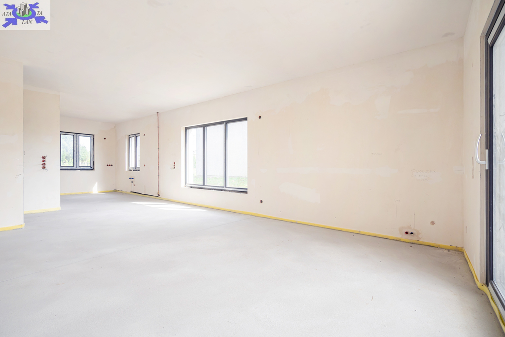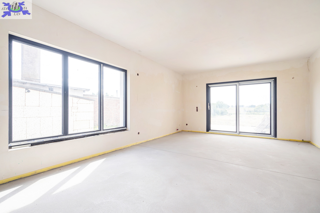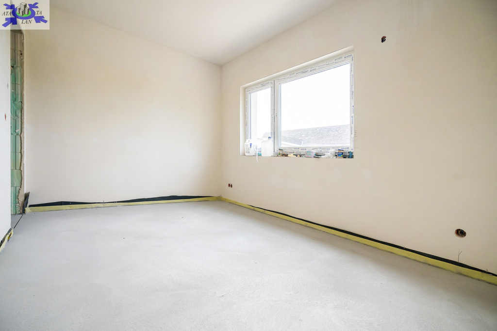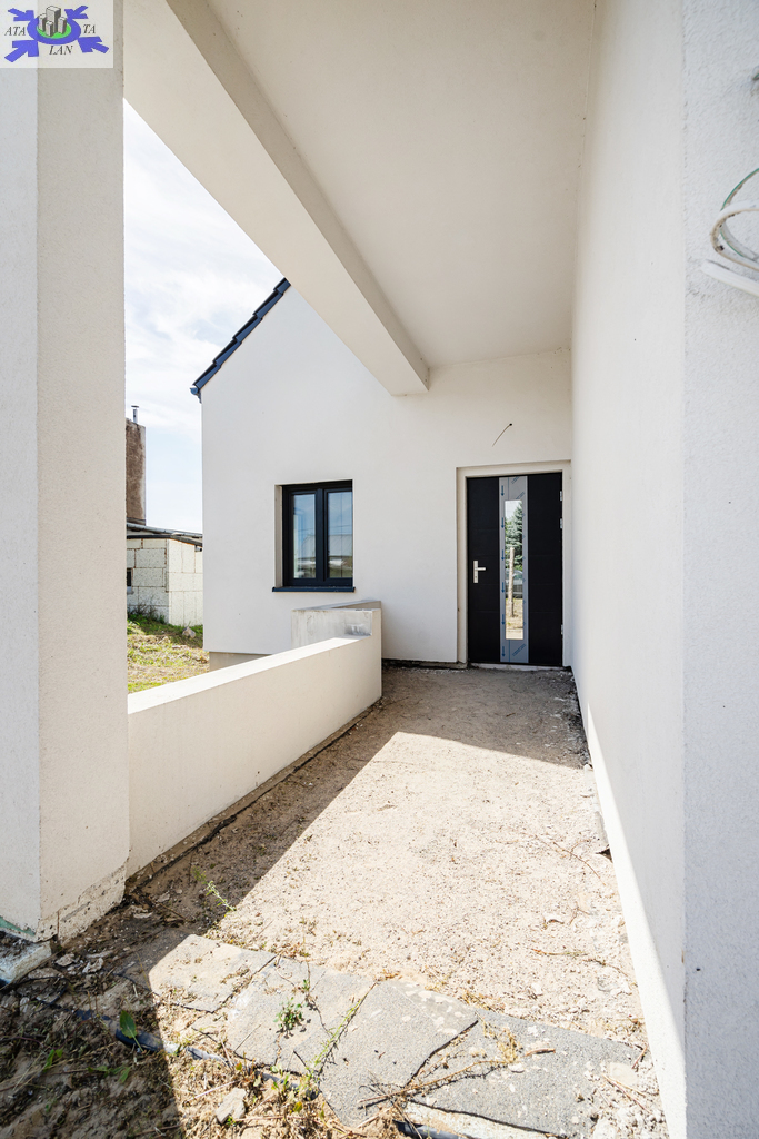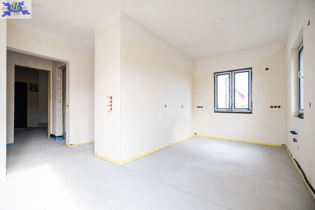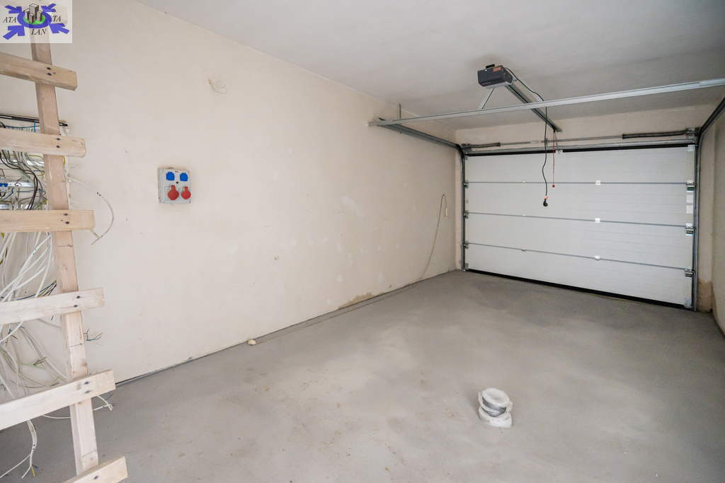Nieruchomość posiada dodatkową powierzchnię mieszkalną lub usługową o powierzchni około 30 m2. Dom składa się z otwartego salonu o powierzchni 28,74 m2, kuchni 7,70 m2, przestronnej sypialni 12,54 m2, pokoju 7,30 m2, łazienki 5,52 m2, pralni z WC i wyjściem na zewnątrz 4,40 m2, korytarza 9,60 m2, wiatrołapu 5,25 m2, pomieszczenia gospodarczego 1,50 m2, garażu 21,83 m2 oraz zadaszonego tarasu z przesuwnymi drzwiami HS o powierzchni 17,1 m2.