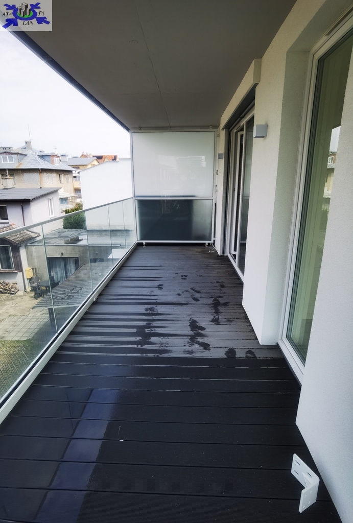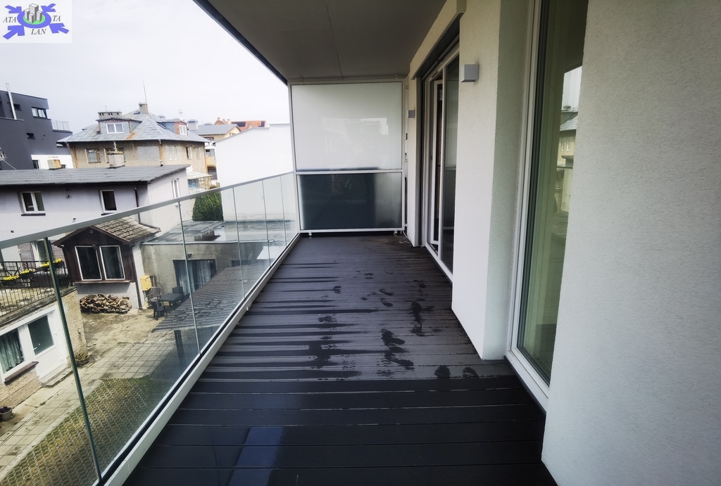 W skład apartamentu wchodzi przestronny, przeszklony salon z aneksem kuchennym oraz oddzielna, przytulna sypialnia.