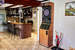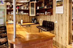 kącik barowy (ok. 5 m2) wyposażony w stylowe stołki barowe (hokery), niezbędne meble i sprzęty (m. in. lodówka, zmywarka),