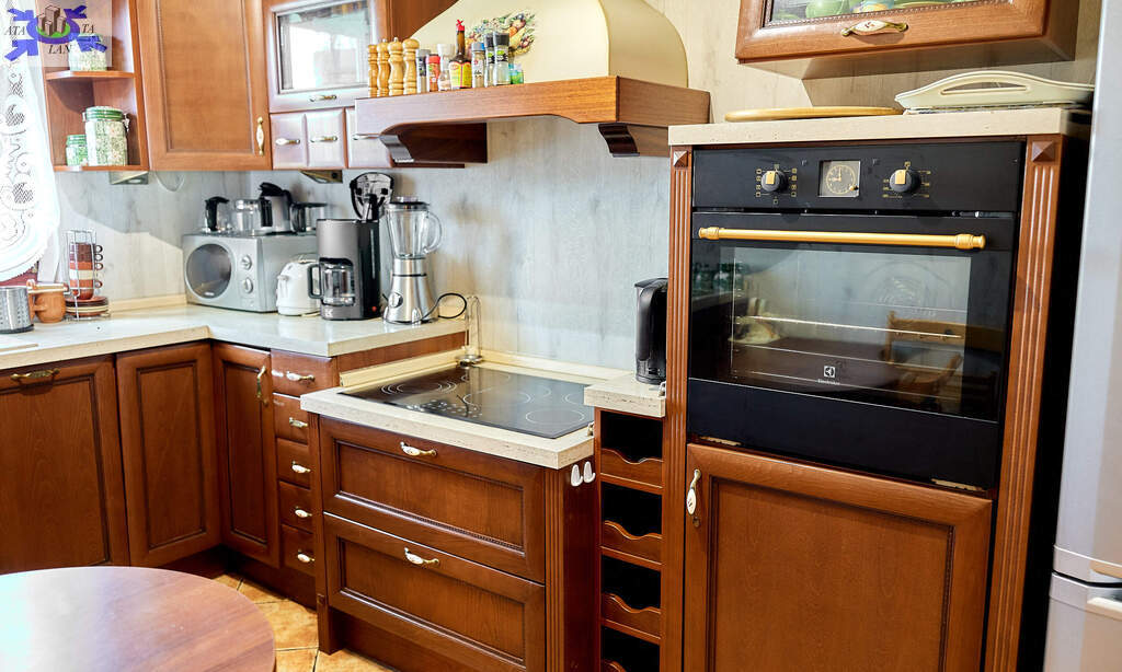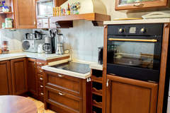 kuchnia o pow. ok. 9 m2 z meblami w zabudowie ze sprzętem AGD (lodówko-zamrażarka, piekarnik elektryczny, płyta kuchenna indukcyjna, okap kuchenny, zmywarka, zlewozmywak,