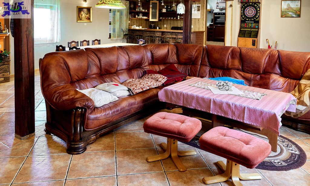 Kompletnie wyposażony, przystosowany do wygodnego, komfortowego zamieszkania nawet 10 osób. Oferujący dużą przestrzeń do wypoczynku, włącznie z sauną, dużą wanną z hydromasażem, boiskiem, grillem itp. atrakcjami.