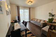 Mieszkanie rozkładowe o powierzchni 42,6m2 składa się z pokoju z aneksem kuchennym 21m2, sypialni 13,5m2, łazienki z wc 4,6m2 i przedpokoju 3,7m2. Z salonu wyjście na słoneczny balkon o powierzchni 5m2, z widokiem na plac zabaw.