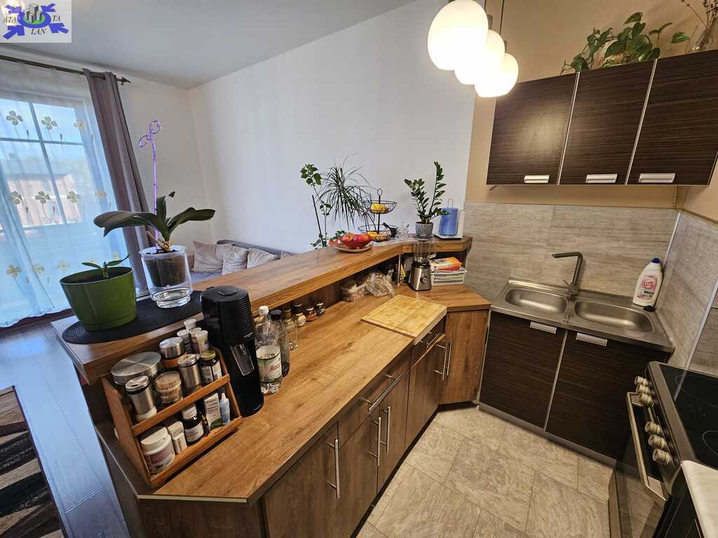 Mieszkanie rozkładowe o powierzchni 42,6m2 składa się z pokoju z aneksem kuchennym 21m2, sypialni 13,5m2, łazienki z wc 4,6m2 i przedpokoju 3,7m2. Z salonu wyjście na słoneczny balkon o powierzchni 5m2, z widokiem na plac zabaw.