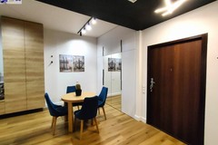 Apartament wykończony w nowoczesnym, spójnym stylu, z wykorzystaniem materiałów wysokiej jakości. Jasny salon połączony z aneksem kuchennym tworzy komfortową, dobrze doświetloną przestrzeń dzienną. Duże przeszklenia prowadzą na loggię i zapewniają atrakcyjny widok na centrum miasta.
