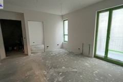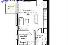 - salon połączony z aneksem kuchennym oraz wyjściem na balkon