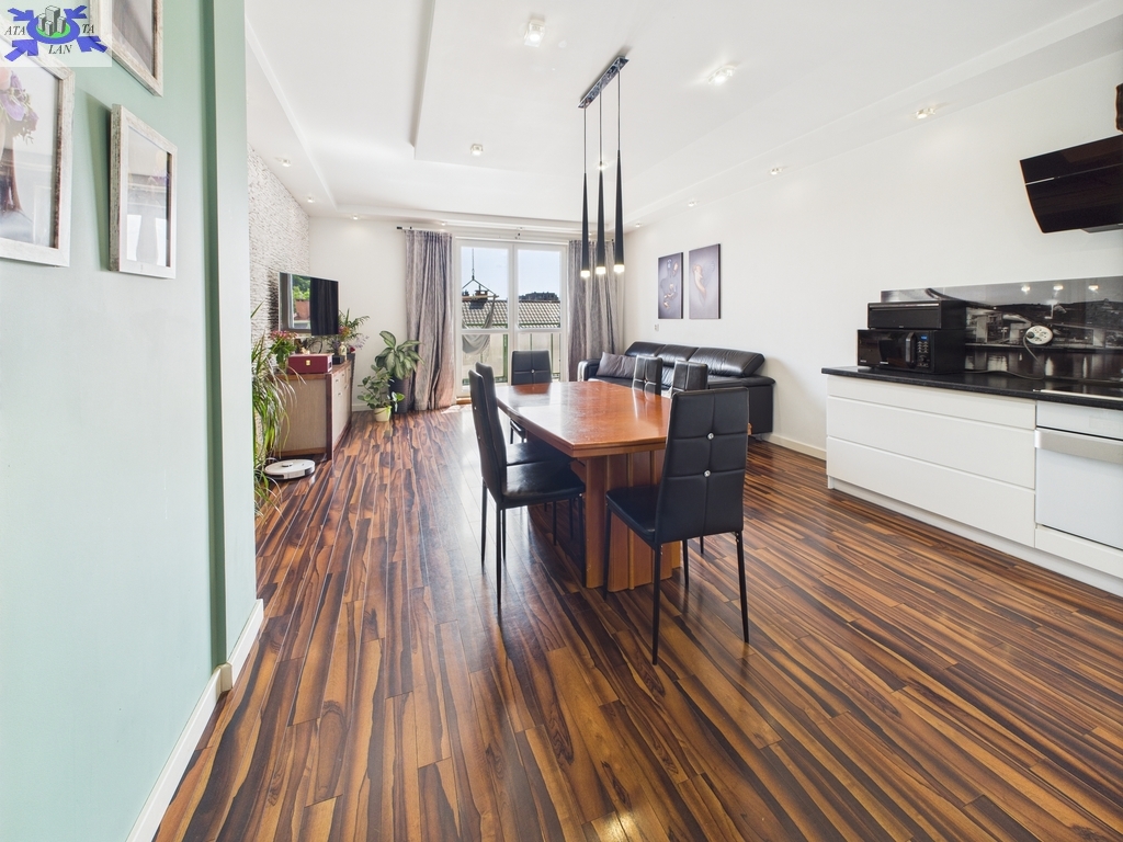 * Salon z aneksem kuchennym - otwarte, dobrze doświetlone pomieszczenie łączące strefę wypoczynku z jadalnią, idealne do wspólnych spotkań.
