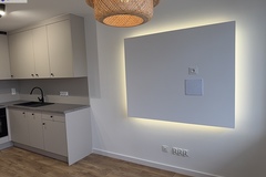 - ustawny salon z aneksem kuchennym