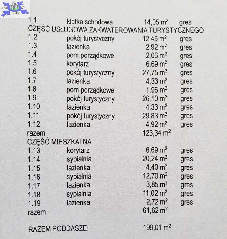 1. piętro - 199,01 m2 - 7. pokoi z łazienkami, pomieszczenie gospodarcze.