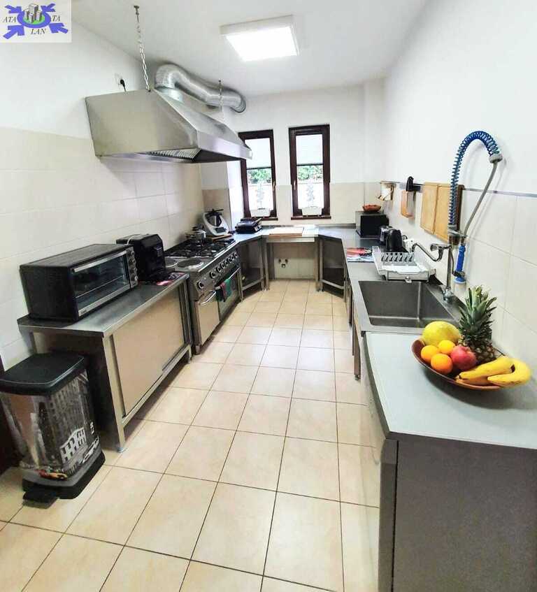 Budynek przystosowany do prowadzenia działalności opiekuńczych oraz hotelarskich (zgodnych z przeznaczeniem, z pełną dokumentacją), wyposażony m.in. w dużą jadalnię o powierzchni 45 m2, kompletnie wyposażoną kuchnię przemysłową, pomieszczenia do przechowywania i przygotowywania żywności, pomieszczenie gospodarcze, lodówki, zmywarkę, szafki, łącznie 9 sypialni z łazienkami oraz 2. dodatkowe pokoje/biura. Wszystkie drzwi, korytarze i pomieszczenia są przystosowane do potrzeb osób poruszających się na wózkach inwalidzkich. Zgodnie z pierwotnym projektem, budynek może komfortowo pomieścić około 21 osób. W budynku znajduje się także winda.