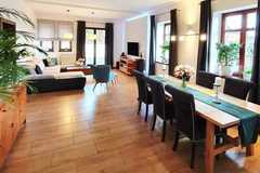 Budynek przystosowany do prowadzenia działalności opiekuńczych oraz hotelarskich (zgodnych z przeznaczeniem, z pełną dokumentacją), wyposażony m.in. w dużą jadalnię o powierzchni 45 m2, kompletnie wyposażoną kuchnię przemysłową, pomieszczenia do przechowywania i przygotowywania żywności, pomieszczenie gospodarcze, lodówki, zmywarkę, szafki, łącznie 9 sypialni z łazienkami oraz 2. dodatkowe pokoje/biura. Wszystkie drzwi, korytarze i pomieszczenia są przystosowane do potrzeb osób poruszających się na wózkach inwalidzkich. Zgodnie z pierwotnym projektem, budynek może komfortowo pomieścić około 21 osób. W budynku znajduje się także winda.