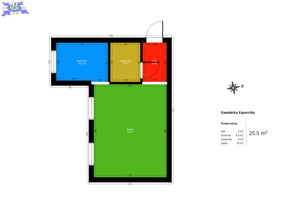 układ przedpokój, łazienka, widna kuchnia oraz pokój