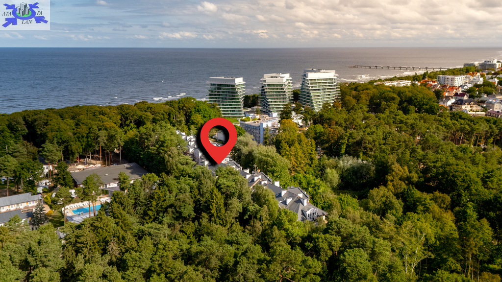 Apartament znajduje się przy ul. Gryfa Pomorskiego, w jednej z najbardziej pożądanych części Międzyzdrojów, zaledwie kilkadziesiąt metrów od plaży. W najbliższym otoczeniu znajdują się