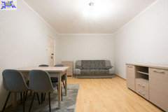 - jasnego pokoju z wyjściem na balkon typu loggia. Pokój wyposażony jest w rozkładaną, wygodną kanapę, stół z krzesłami oraz komodę.