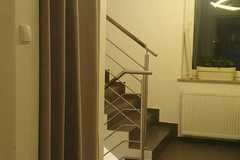 Mieszkanie zajmuje pierwsze piętro oraz poddasze budynku. Pomieszczenia są jasne, a układ pozwala na wyraźny podział na część dzienną i prywatną.