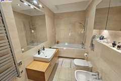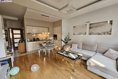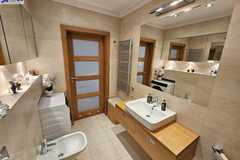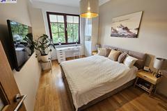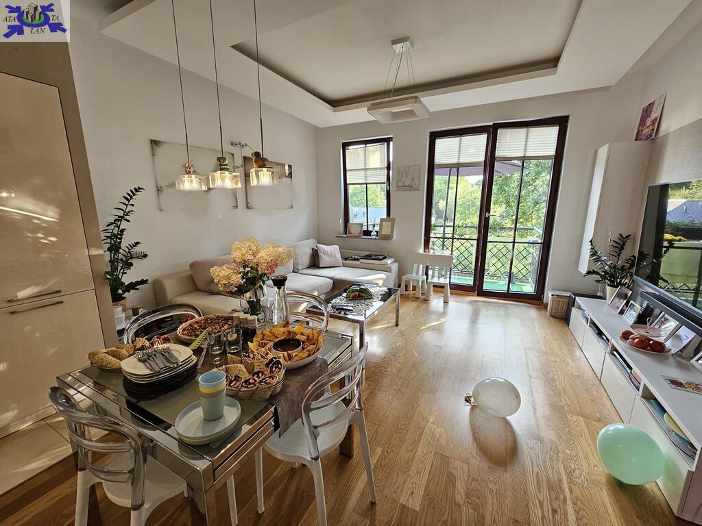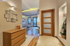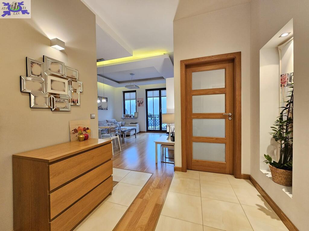 Apartament zadbany, zaaranżowany przez projektanta wnętrz w ciepłej kolorystyce. Uroku dodają drewniane okna z granitowymi parapetami. Wystawa okienna salonu i mniejszego pokoju południowo-zachodnia, pokoju dziecięcego wschodnia. W pokojach na podłodze znajduje się deska podłogowa w kolorze dębu. We wszystkich oknach plisy okienne. W pomieszczeniach drzwi drewniane dębowe.