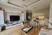Salon szafki RTV + słupki na ścianie. Brak narożnika, stołu jadalnego z krzesłami i sprzętu rtv.