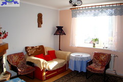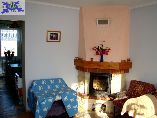 Na piętrze drugie mieszkanie - pokój z kominkiem, sypialnia, kuchnia, łazienka.