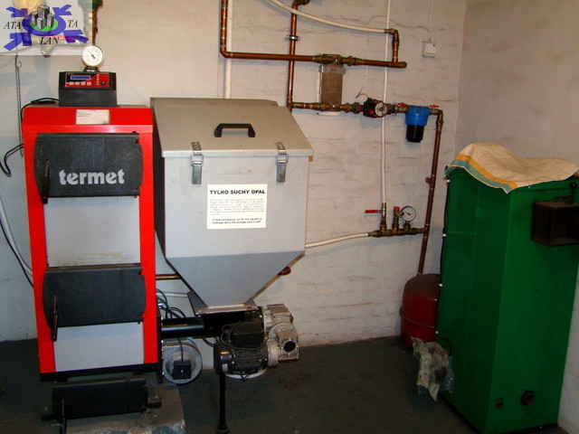 Ogrzewanie z nowoczesnego pieca na "groszek" węglowy, ciepła woda z bojlera.