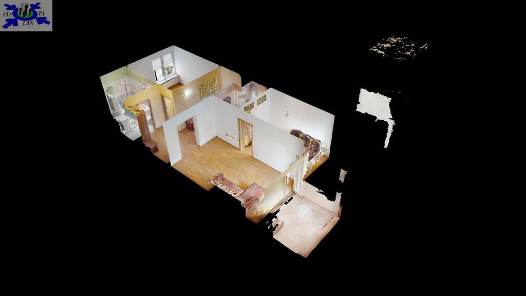 Mieszkanie obecnie składa się z trzech pokoi - jeden z nich powstał z pierwotnej kuchni. Kuchnia została przeniesiona do pomieszczenia po garderobie (w księdze wieczystej lokal widnieje jako dwupokojowy z osobną kuchnią i garderobą).