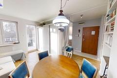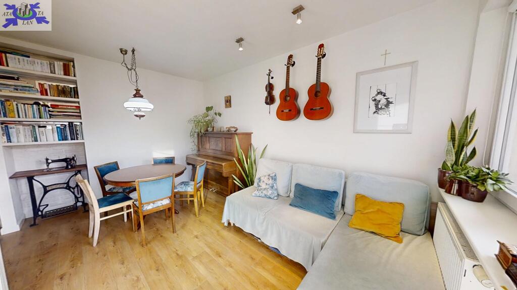 Mieszkanie pierwotnie było dwupokojowe - w chwili obecnej przystosowane przez architekta do potrzeb rodziny 4-osobowej. Jeden z pokoi został przedzielony lekką ścianką z płyt g-k, niewielkim nakładem kosztów można powrócić do stanu pierwotnego. Mieszkanie zaprojektowane z dbałością o ergonomię i zachowanie poczucia przestronności w korytarzach szafy, wykorzystujące całą wysokość pomieszczeń, aranżacja kuchni oparta na wygodnym systemie szufladowym. Specjalnie zaprojektowany układ ścian mieści z jednej strony biblioteczkę, z drugiej - szafę gospodarczą.