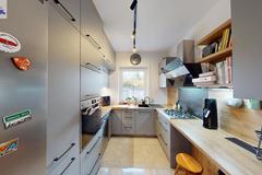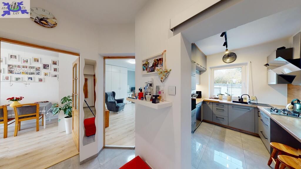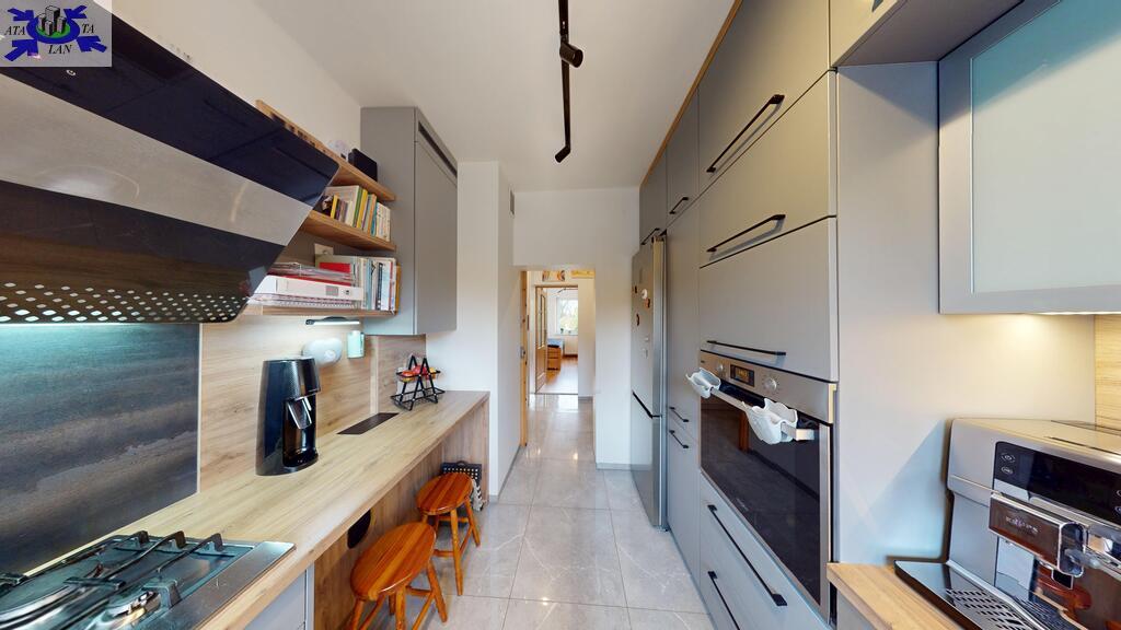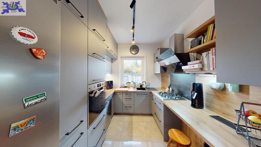 - oddzielna kuchnia z piękną, nowoczesną zabudową na wymiar aż do sufitu,