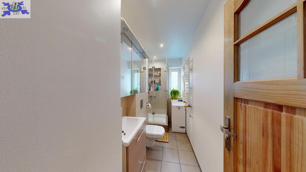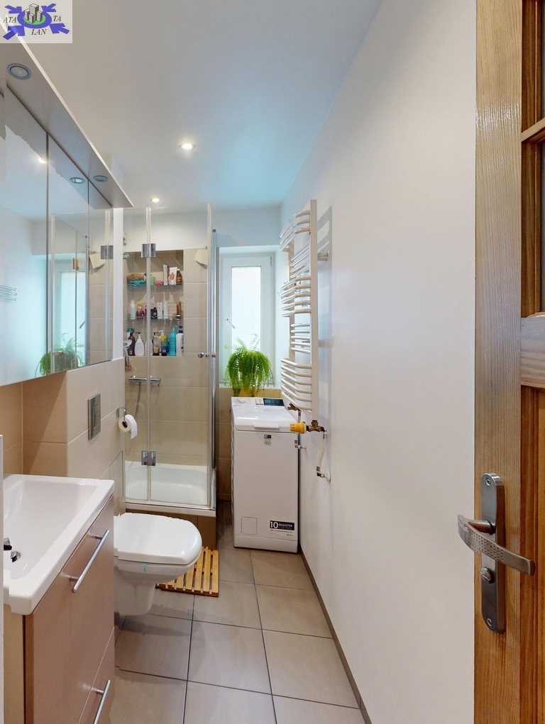 - łazienka razem z WC, wyposażona z kabinę prysznicową, z oknem,