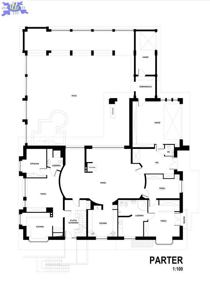 - salon/ sala klubowa 50 m2, ściana okien z wyjściem na dyskretne, przestronne patio z fontanną oraz grilem,