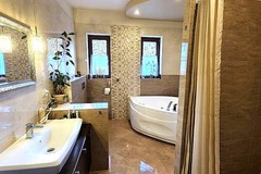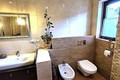 - dużą łazienkę z WC wyposażoną w wannę, prysznic, WC oraz bidet,