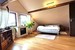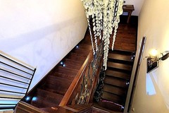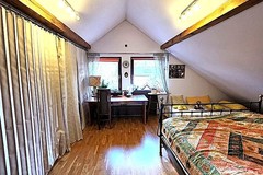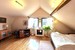 Drewniane schody prowadzą na użytkowe poddasze, na którym znajdują się