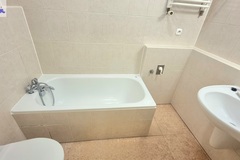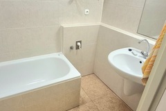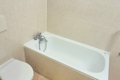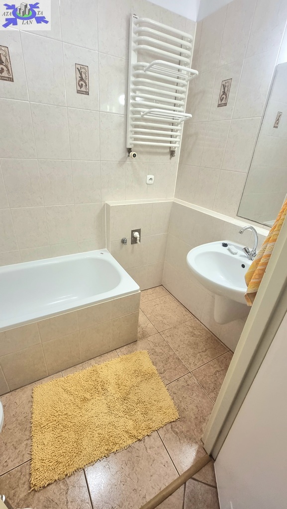 Elegancka Łazienka (3,4 m2) Wykończona w klasycznej glazurze i terakocie, wyposażona w wannę, która zapewnia idealne warunki do relaksu.