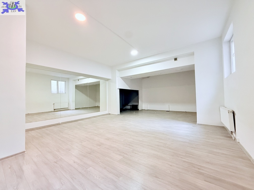 Lokal znajduje się w piwnicy poziom -1, z dostępem światła dziennego dzięki oknom.