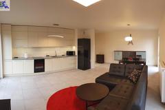 Mieszkanie jest nowocześnie zaaranżowane - salon z aneksem kuchennym jest otwarty również na przedpokój, co optycznie powiększa wnętrze.