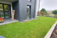 Ze wszystkich trzech pokoi można wyjść na prywatny, przynależny do mieszkania ogród i cieszyć się słońcem na zadbanej trawie.