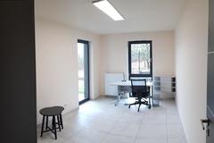 W drugiej sypialni - gabinecie - duża trzydrzwiowa pojemna szafa, biurko z fotelem biurowym oraz półki i stolik kawowy.