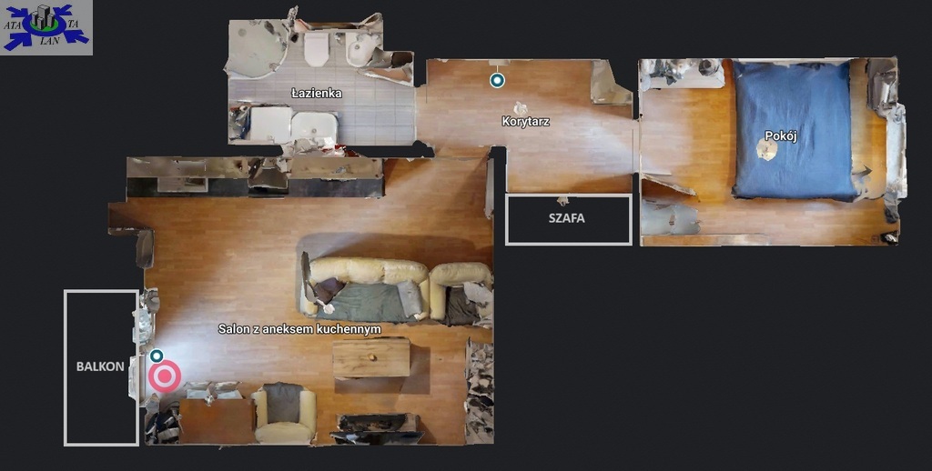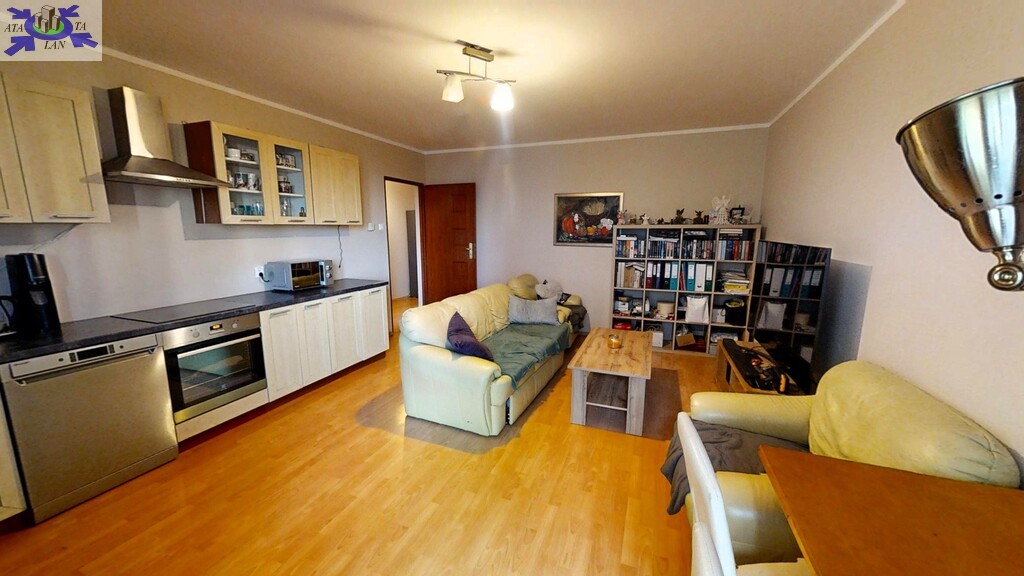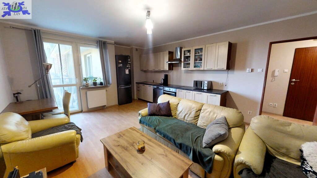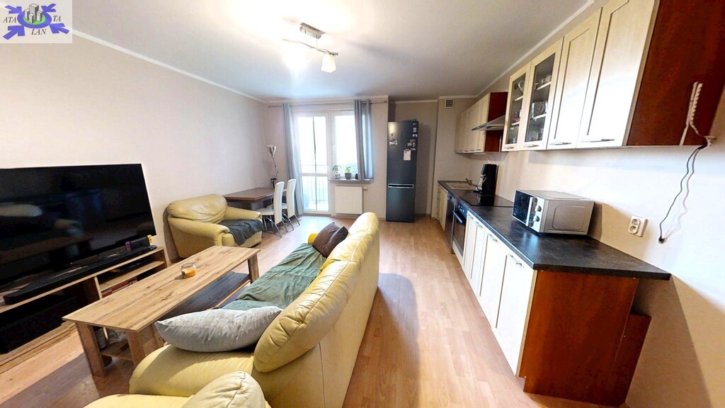- salon z aneksem kuchennym i wyjściem na balkon,