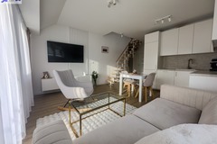 - Przestronny, jasny salon z aneksem kuchennym i wyjściem na balkon, 28,62m2